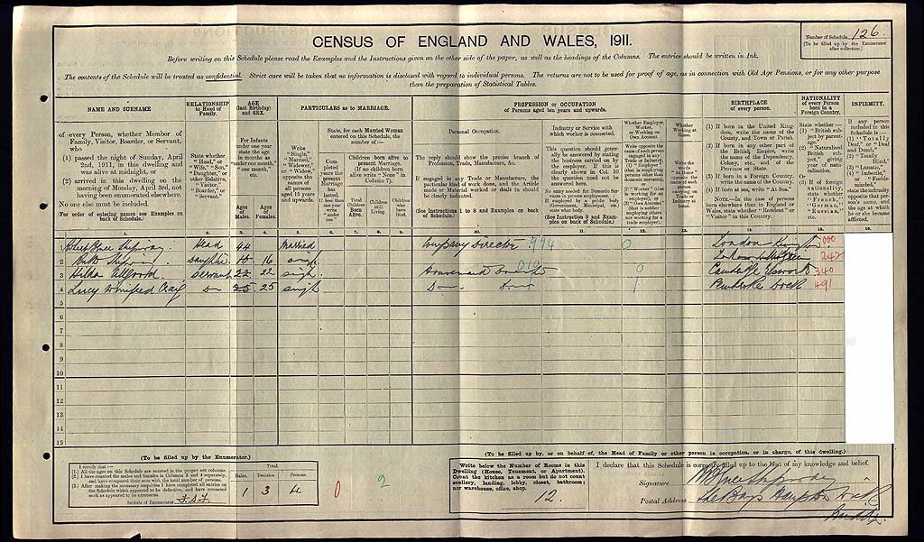 1911 Census Schedule # 126